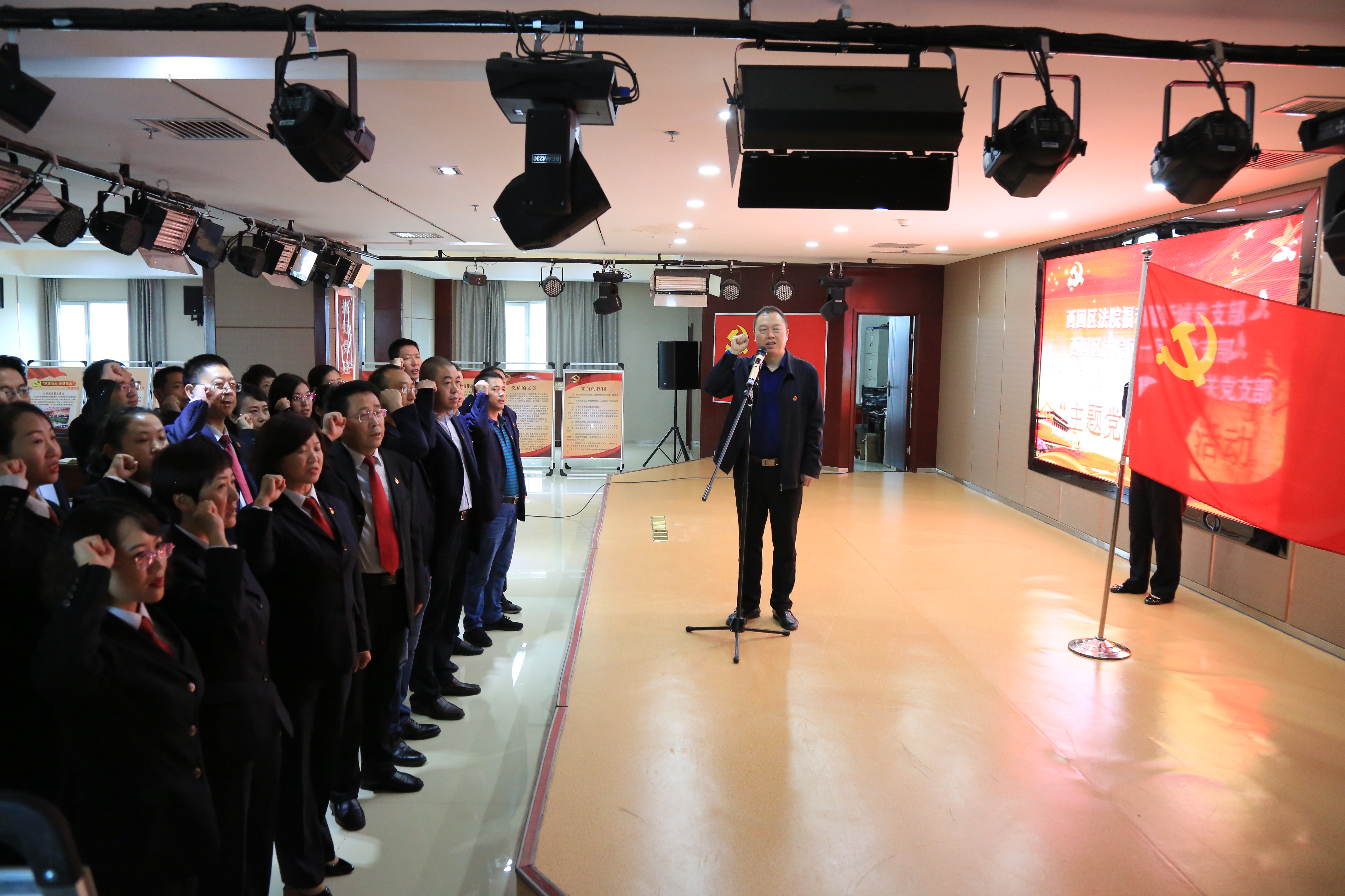 正值第二批“不忘初心、牢記使命”主題教育開展之際,又恰逢國慶假期第一周,舉國上下還沉浸在慶祝新中國成立70周年的喜悅氛圍中。10月9日,在西固法院分管院長帶領下,民一民二黨支部和福利路新城法庭黨支部深入我司開展“主題黨日+”和支部聯建活動。